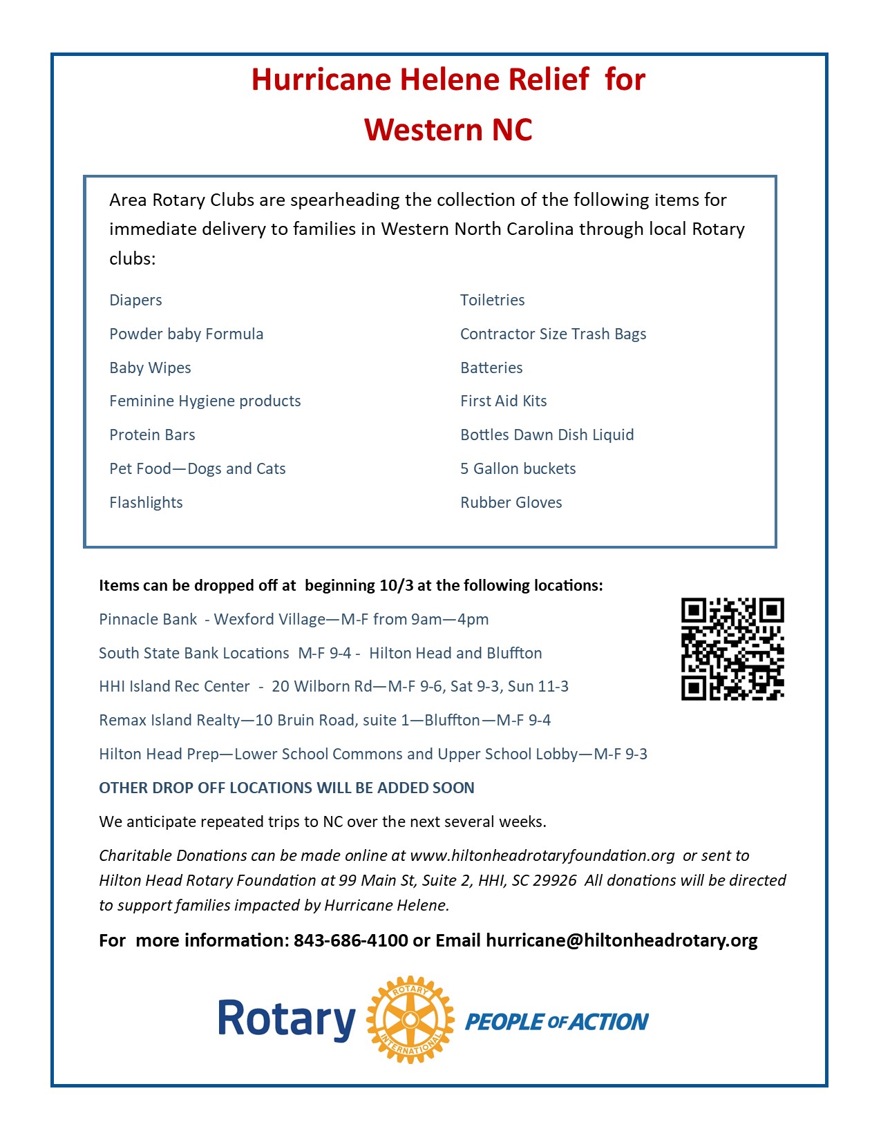 Once again, we are reaching out to the Hilton Head Island and Bluffton community to collect items that are most in need right now, we will update the list as things change. We are establishing drop off points throughout the community to make it easier everyone to participate. And we are collecting tax-deductible donations through the link below or by mailing a check to our office address: